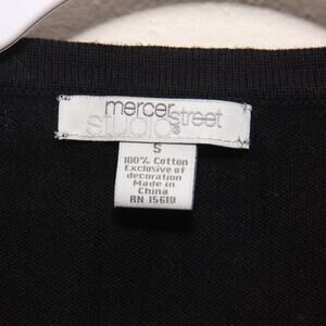 Mercer Street Studio Santa Presents Tree Cute Ugly Christmas Cardigan Sweater Size Small. Santa's body is glass beads. Fuzzy beard, cuffs and hem. Presnts and tree are felt and fabric embroidered appliques, with sequin and beaded accents.. 3-D snowflakes and crystals for snow. Front placket covered with multicolor sequins. Very intricate. Lighter weight sweather knit. Not heavy like lots of Christmas sweaters.