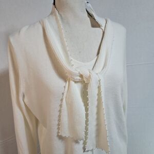 Mercer Street Studio pullover Sweater Womens M, Soft White, Long Sleeve, Beaded Scarf Nwt