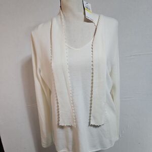 Mercer Street Studio Sweater Womens M, Soft White, Long Sleeve, Beaded Scarf Nwt