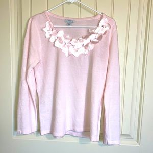 Mercer Street Studio Sweater Women’s Size M Baby Pink Soft Flowers Rhinestones