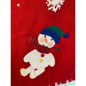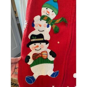 Mercer Street Studio Vest Red Christmas Applique Snowmen Embroider Snowflake Lg