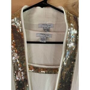 Mercer Street Studio Women's 2 piece cardigan &tank top.Cream w/ Gold sequins XL