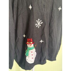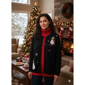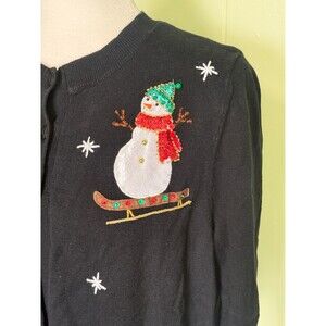 Mercer Street Studio Women's Black Ugly Christmas Sweater Snowmen Cardigan Sz Lg