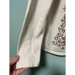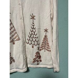 Mercer Street Studion Women's Cream and Gold Christmas Tree Sweater Cardigan Med