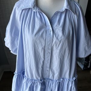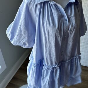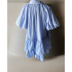 & Merci Blue Mini Dress with Daisy Embroidery Size M Puff Sleeve Sweetheart Neck