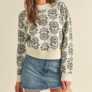 &Merci Cream & Gray Floral Print Cropped Sweater