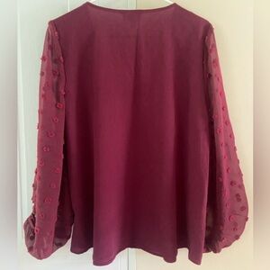 &Merci Fall Cranberry Wine blouse with beautiful detailed sleeves Size Large