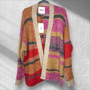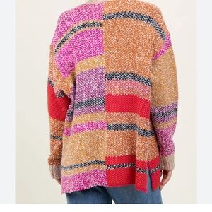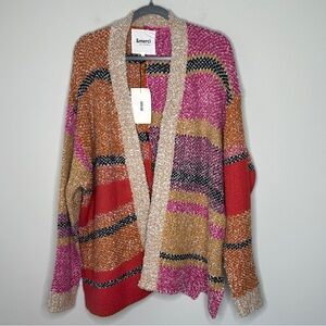 & Merci Fuchsia Oversized Colorblock Stripe Cardigan Size Large NWT Boho Cozy