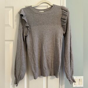 Add a touch of elegance to your wardrobe with this stylish gray ruffled sweatshirt. Perfect for casual outings or cozy days at home.