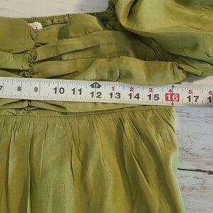 & Merci Green Satin Smocked Long Sleeve Blouse Top Whimseygoth Cottage NEW L