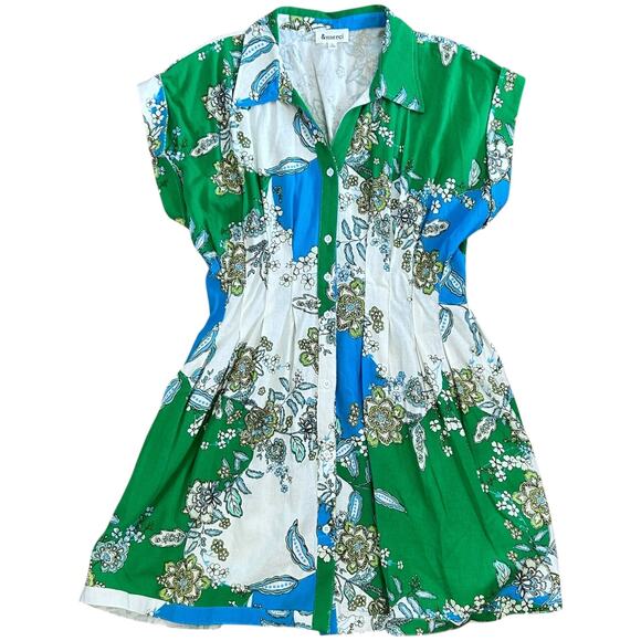 &Merci Mini Dress Floral Paisley Print Green & Blue Wmn Sz Large Cottagecore