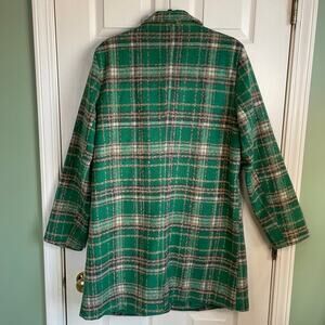 &Merci Plaid Knit Coat Collar Notched Lapel Sz L Lined Pockets Preppy Academia