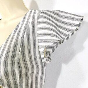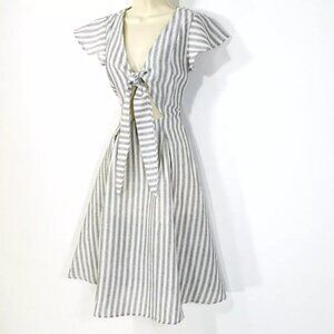 &Merci Tie Front Linen Blend Dress Sz M Flutter Sleeves Stretch Waist Cut Out