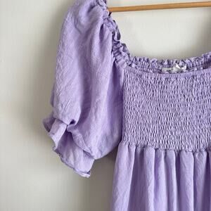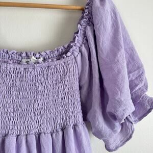 &Merci Tiered Smocked Short Sleeve Square Neck Midi Dress Purple S