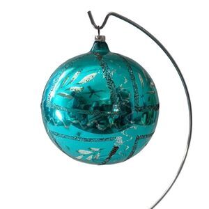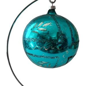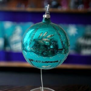 Mercury Glass Ball Ornament Blue West Germany LARGE Handblown 925 Silver Glitter