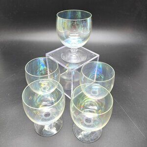 Mercury Glass Cocktail Glasses Vintage Barware Set Of 5 Iridescent Clear JJ4028