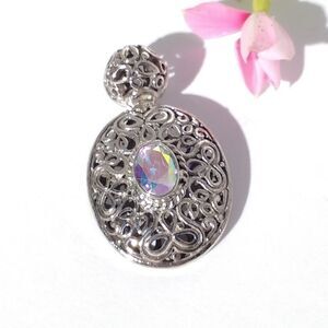 A beautifully crafted mercury mystic topaz pendant is set in 925 sterling silver.