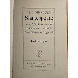 Mercury Shakespeare, Twelfth Night 1939, Misprint, Upside-down cover, Harper & Brothers, Black and green, Rare book, Collectible item, Shakespeare collector, Vintage book, 1939 print, Unique misprint