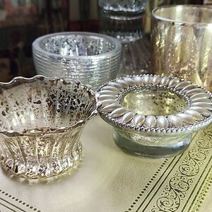 Mercury Glass Candleholders Gold/Silver Tone Mix Diff Heights Textures
