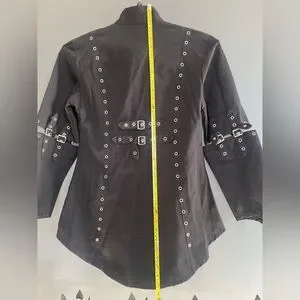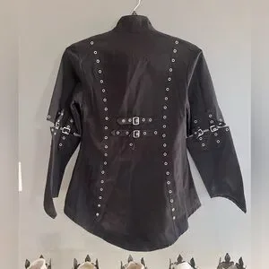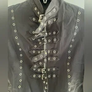 This unique lightweight Gothic jacket is one of a kind. It’s from the UK of Mercy clothing. Late 90’s. Excellent condition. Size Small