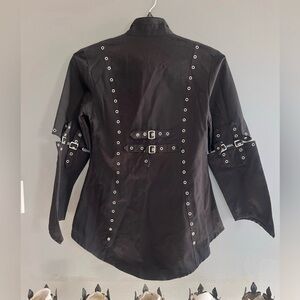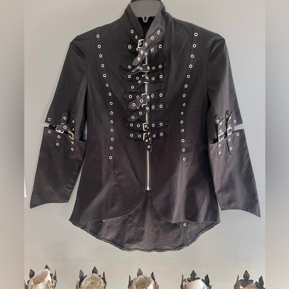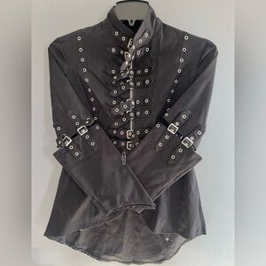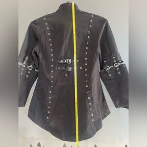 This unique lightweight Gothic jacket is one of a kind. It’s from the UK of Mercy clothing. Late 90’s. Excellent condition. Size Small