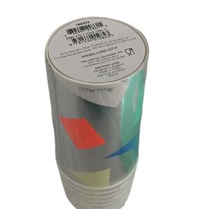 Bright and colorful design. Silver foil with fun geometric shapes. Includes both plates and cups.