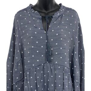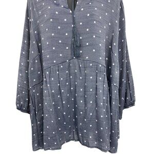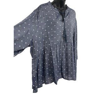 Meri Skye Plus 3X Blue Polka Dot Tunic Top Blouse Tunic Long Sleeve Keyhole New