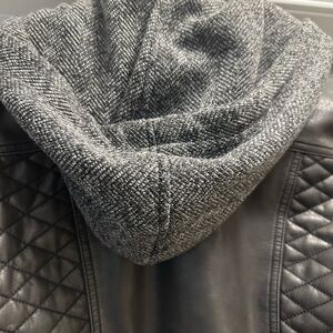 Meriam Knit Hood Faux Leather Jacket Mo-Ka