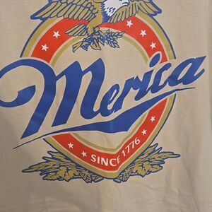 Show your patriotic spirit with the Merica tan graphic t-shirt. Perfect for casual outings.