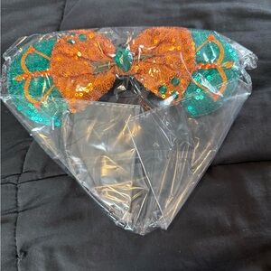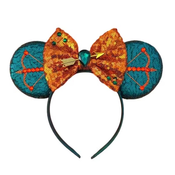 Set of Mickey ears headband in teal with Merida design. It has an orange bow. Brand new still in the packaging and never been used. Price is firm.