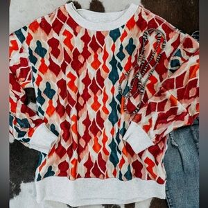 This Fall for a Cowboy sweatshirt is so casual but fun. This sweatshirt is reversible and adds a fashionable touch to your wardrobe this Fall. It can be worn with jeans, leggings, or even a skirt!