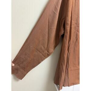 Merigold Kiss shirt, plus size shirt, women’s 3X blouse, button down shirt, collared blouse, casual button front shirt, oversized shirt, brown shirt, rust shirt, long sleeve shirt, pocket blouse, relaxed fit shirt, lightweight cotton blend shirt, fall blouse, layering shirt, work shirt, everyday top, minimalist shirt, neutral shirt, earth tone blouse, casual office shirt, simple button up, modern basics shirt, Merigold Kiss, plus size fashion, women’s clothing, casual wear, workwear, minimalist, neutral tones, earthy colors, fall fashion, layering piece, classic basics, versatile top, everyday wear, soft autumn, capsule wardrobe, modern casual, relaxed style, minimalist, neutral, earthy, versatile, classic, timeless, casual, work-ready, relaxed, everyday, effortless, modern, soft autumn, understated, simple chic, layering, wardrobe essential