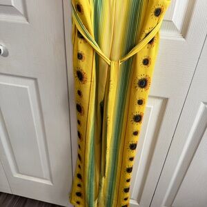 New with tags, sunflower wide strap flare leg jumpsuit with pockets, waist tie