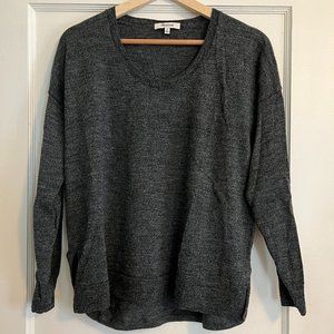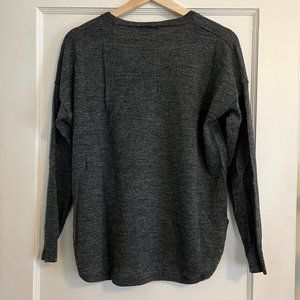 A soft, swingy merino sweater with a cool hem that's straight in front and curved in the back. Light, easy and a soon-to-be essential.