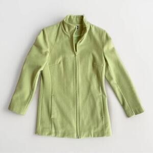 Merino Wool Bright Green Coat SB ZIp Front Stand Collar Sz 0 Petite