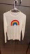 Stylish cream sweater with a vibrant rainbow motif. Beautiful, lightweight merino wool. Gently used condition from my own closet.