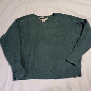 This is a beautiful, nearly new Max Studio sweater in a stunning teal color. Made from extra-fine merino wool, it is incredibly soft and comfortable. The sweater is an oversized style and a size small. Perfect for adding a pop of color and cozy warmth to your wardrobe!