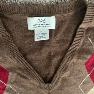 Brooks Brothers. Size medium. 100% merino wool. Very small hole on back shown in photos