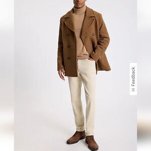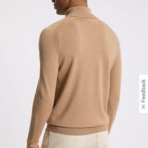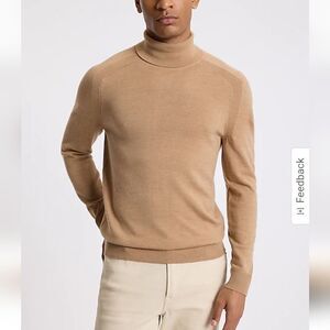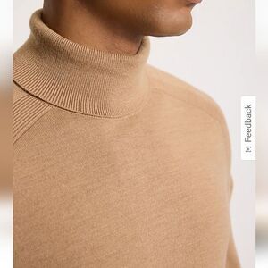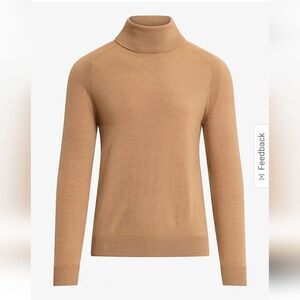 Stay warm and stylish with this classic tan turtleneck sweater. Perfect for any occasion.