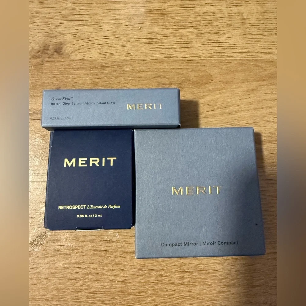 MERIT 3pc Set Retrospect L'Extrait de Parfum, Serum, Compact Mirror