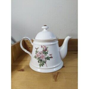 Meritage Spring Floral Porcelain Teapot Ivory Pink Green Tea stains Inside