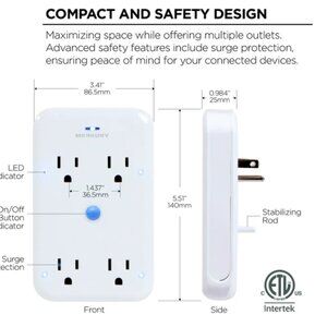 Merkury Innovations Smart 4-Outlet Wall Extender, Wi-Fi Enabled Works with Alexa