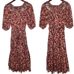 Merlette Andersson Floral Woven Midi Dress Terracotta, size Small