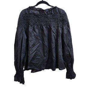 Merlette Majorelle Top Black Smocked Long Sleeve Blouse Size M