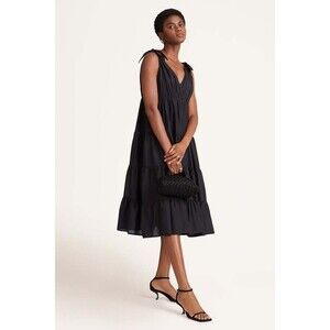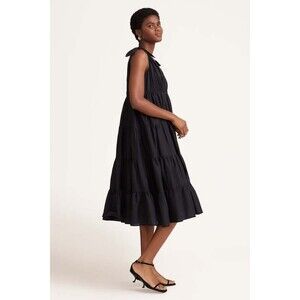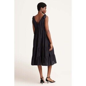 Merlette Solid Flor Midi Dress Tiered Tie Ruffle Sleeveless Cotton S NEW 281936