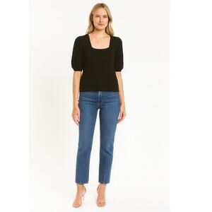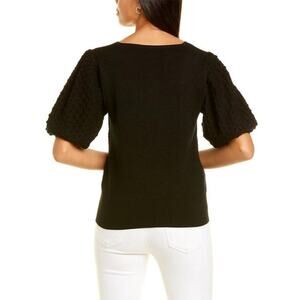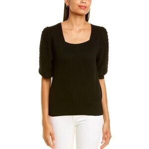 Rich wool sweater with voluminous basket-weaved sleeves and waffle style knit body.