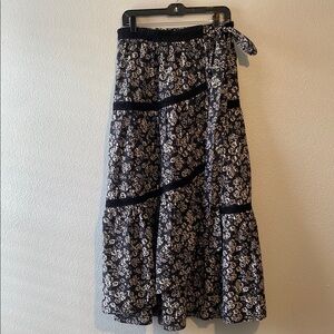 Merlette Floral-Print Pleated-Trim A-Line Maxi Skirt