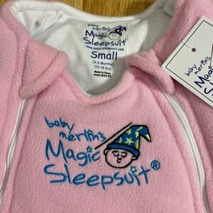Baby’s Small Merlin’s Magic sleepsuit. Fits 3-6 months . 12-18lbs in pink color.