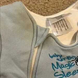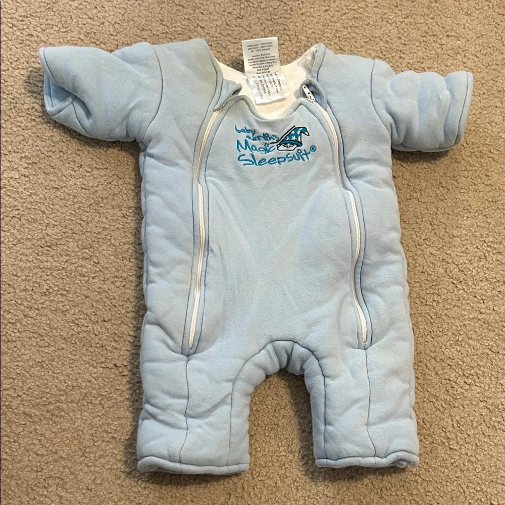 Merlins magic sleep suit. Minor milk discoloration on collar but it’s clean and in good condition