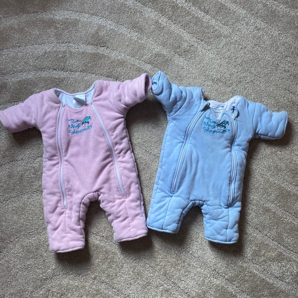 Baby Merlin's Magic Sleepsuit blue and pink bundle Size: 3-6 months/ Small. The pink one is an older model. #baby #sleepsuit #magicmerlin